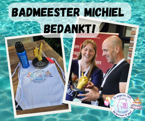 Badmeester Michiel 10x! | Op onze laatste Stomaatje zwemdag stond Michiel, zoals altijd, paraat als badmeester. Met zijn enthousiasme en toewijding zorgde hij ervoor dat iedereen ontspannen en veilig het water in kon.