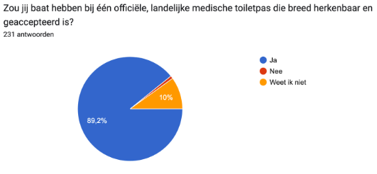 Op de vraag of de stomadragers die de enquête hebben ingevuld denken baat te hebben bij een officiële toiletpas, werd door het merendeel van de stomadragers positief geantwoord: