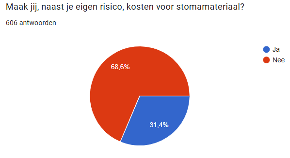 Van de 606 deelnemers gaf 8,3% (50 personen) aan dat ze bepaalde producten niet meer gebruiken omdat ze deze zelf moeten betalen. Dit betekent dat zij mogelijk minder goed voor hun stoma kunnen zorgen. Het gaat vooral over lijmrestverwijderaars!