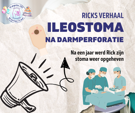 Rick (46): Ik werd in 2024 voor een hersentumor opgenomen en door allerlei complicaties en vele operaties, lag ik 3,5 maand in het ziekenhuis. Eén van de dingen die in die periode gebeurde, was een ontzettende pijn in mijn buik. Ik kreeg een darmonderzoek om te kijken waar de pijn vandaan kwam, en bij dat onderzoek is mijn darm geperforeerd. Daarom kreeg ik een ileostoma.