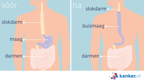 In Nederland wordt bij ongeveer 1000 mensen per jaar slokdarmkanker vastgesteld. Als uit onderzoek is gebleken dat de tumor niet is ingegroeid in- of uitgezaaid naar andere organen, kom je in aanmerking voor de operatie. Bij 4 van de 10 patiënten die slokdarmkanker krijgen, is een behandeling mogelijk die gericht is op genezing. De buismaag maakt het mogelijk om weer via de normale weg te kunnen eten en drinken, maar het is wel een complexe operatie met kans op complicaties. De helft van de geopereerden ondervindt complicaties en sommige blijvend, al variëren de klachten.