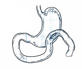 Wanneer de sluitspier (pylorus) van de maag niet goed meer functioneert of er een obstructie is, kan er een deel van de dunne darm zijdelings op de maag worden gehecht. Door een opening in de maag en dunne darm wordt een omleiding naar de dunne darm gecreëerd. Een nieuwe kunstmatige verbinding tussen maag en dunne darm waardoor het voedsel rechtstreeks vanuit de maag in de dunne darm stroomt. (Bron afbeelding: Het boek "Chirurgie" door J.T.E. de Jong)