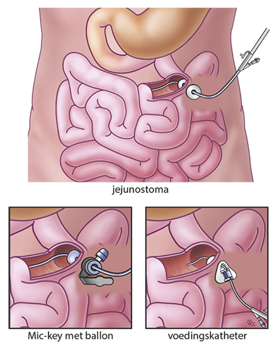 Kijk op de vorige pagina voor meer informatie over dit onderwerp, dingen als voeding en verzorging zijn te vergelijken met de gastrostomie.