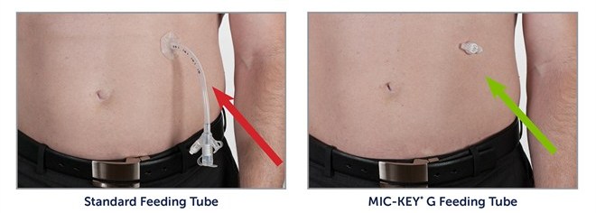 - Het voordeel van een maagbutton is dat je geen slang aan je buik hebt hangen, maar een klein stopje welke vlak tegen de huid aan ligt